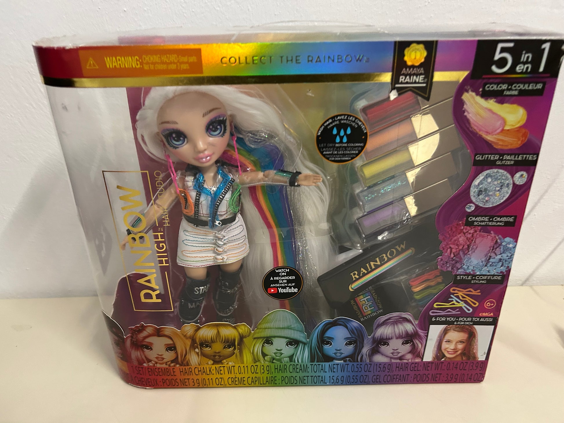 Das exklusive Rainbow High 5-in-1 Haarstudio bietet umfangreiche Styling-Möglichkeiten für die modische Puppe Amaya Raine. Das Set kombiniert verschiedene Funktionen zum Frisieren, Färben und Gestalten in einem kompakten Studio-Design. Mit authentischen Accessoires und hochwertiger Verarbeitung lädt es zu kreativen Spielszenen ein. Das Produkt ist neu und originalverpackt, weist jedoch leichte Lagerschäden an der Verpackung auf, die die Funktionalität nicht beeinträchtigen. Ideal für Sammler und Spielbegeisterte, die Wert auf Qualität legen.